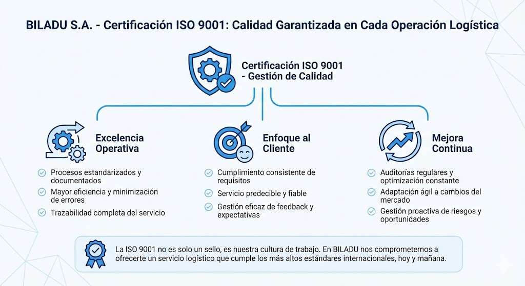 La Dirección de BILADU, S.A., empresa dedicada a la actividad de Agente de Aduanas y Transitarios, considera la Calidad y el estatus OEA como elementos estratégicos para el desarrollo de su actividad. Por ello, establece una Política de Calidad y objetivos orientados a la satisfacción del cliente, el cumplimiento de la normativa aduanera vigente y la mejora continua del Sistema de Gestión.
